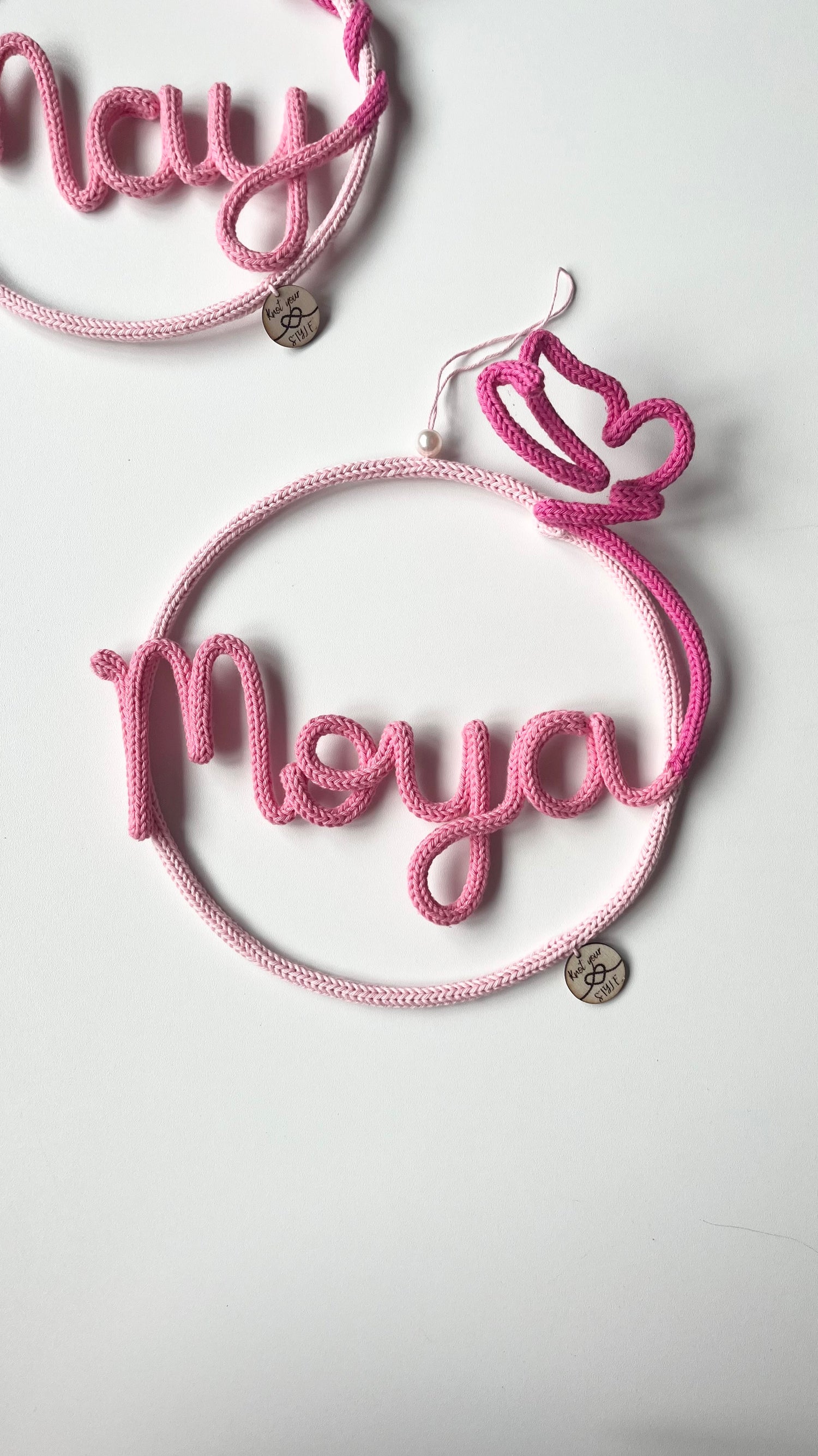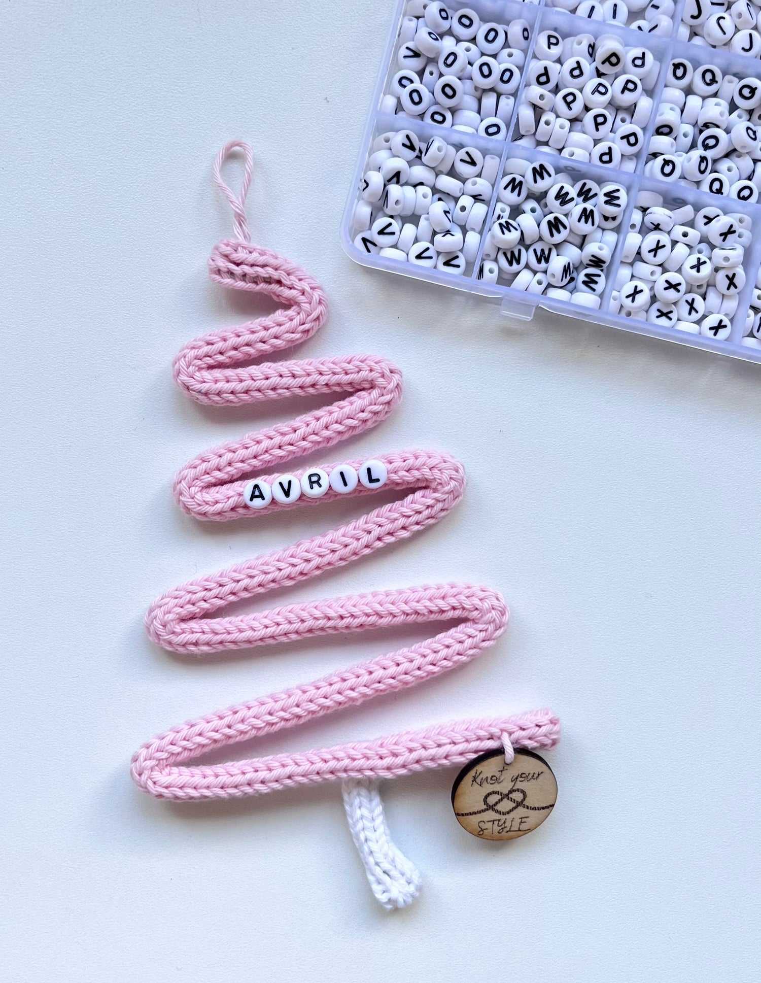 Unique knitted wired words that are styled in a script font and finished with 100% cotton yarn.