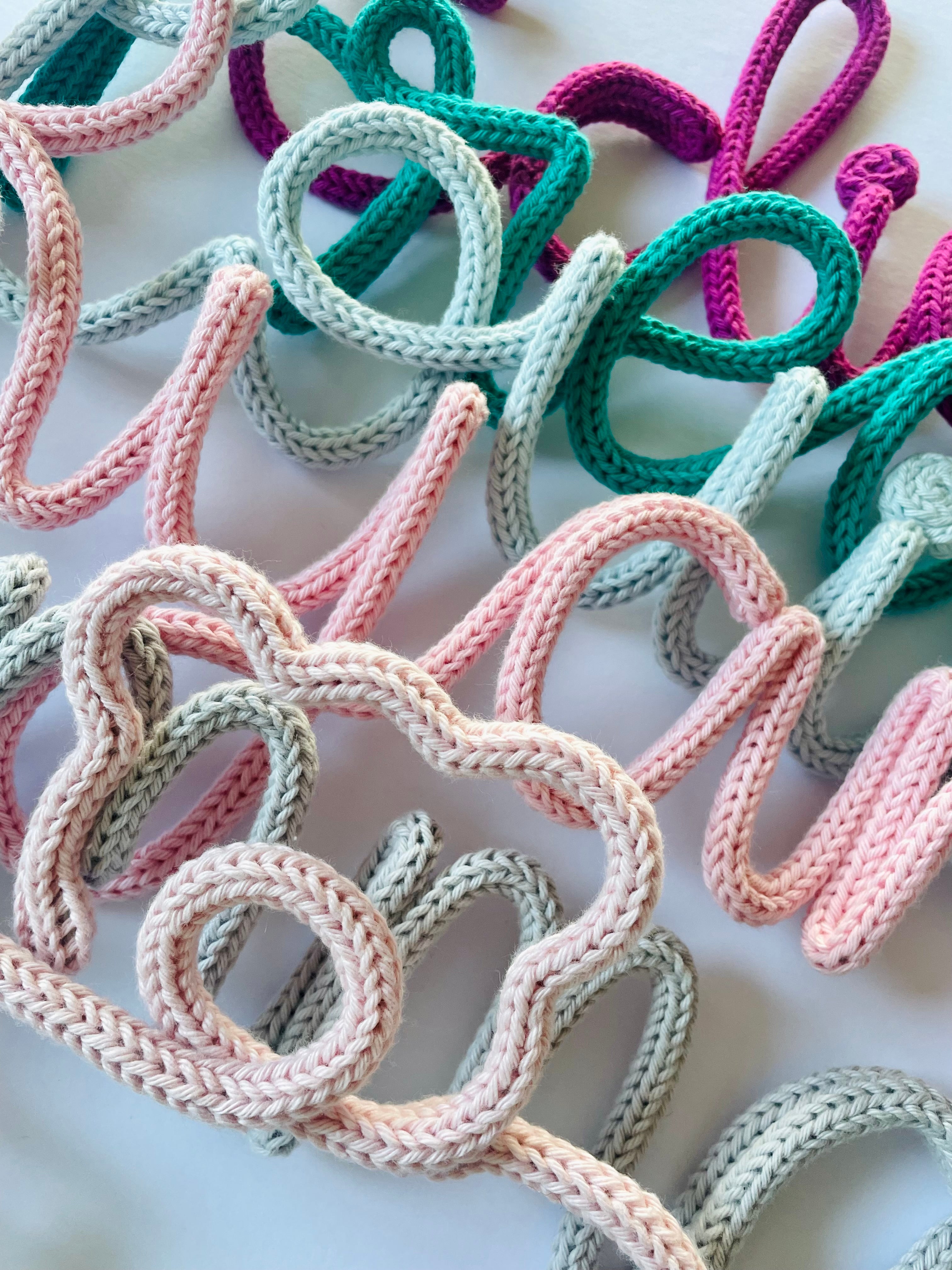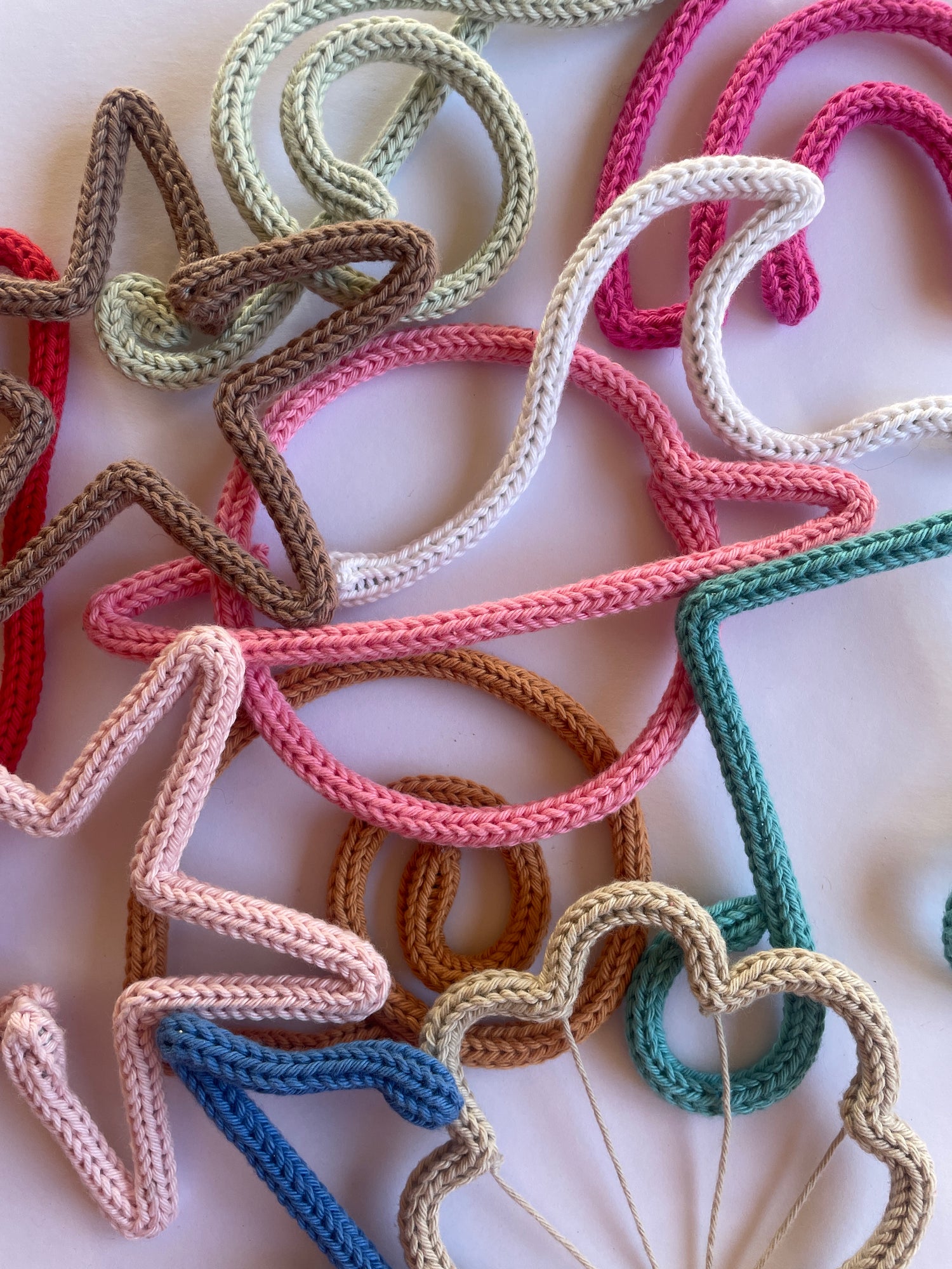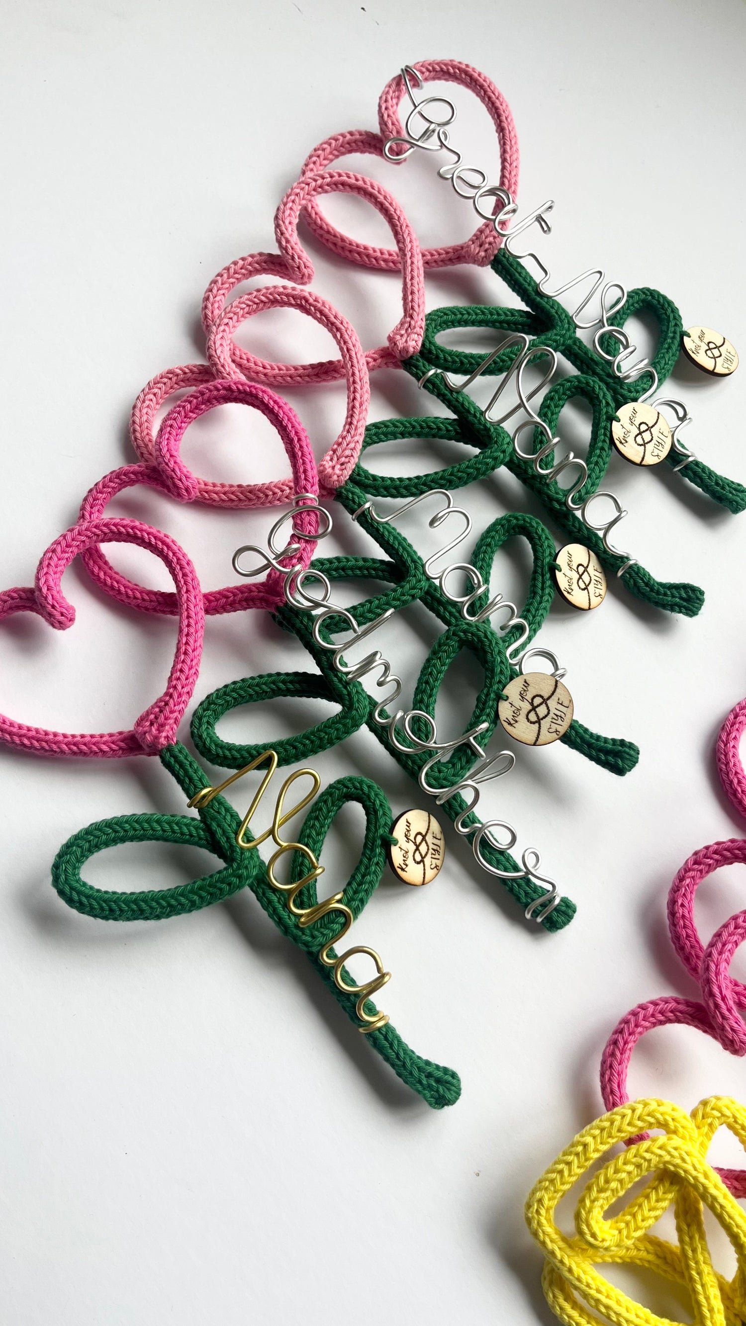 Handmade Knitted Wired Words and Shapes, and Macramé Products.