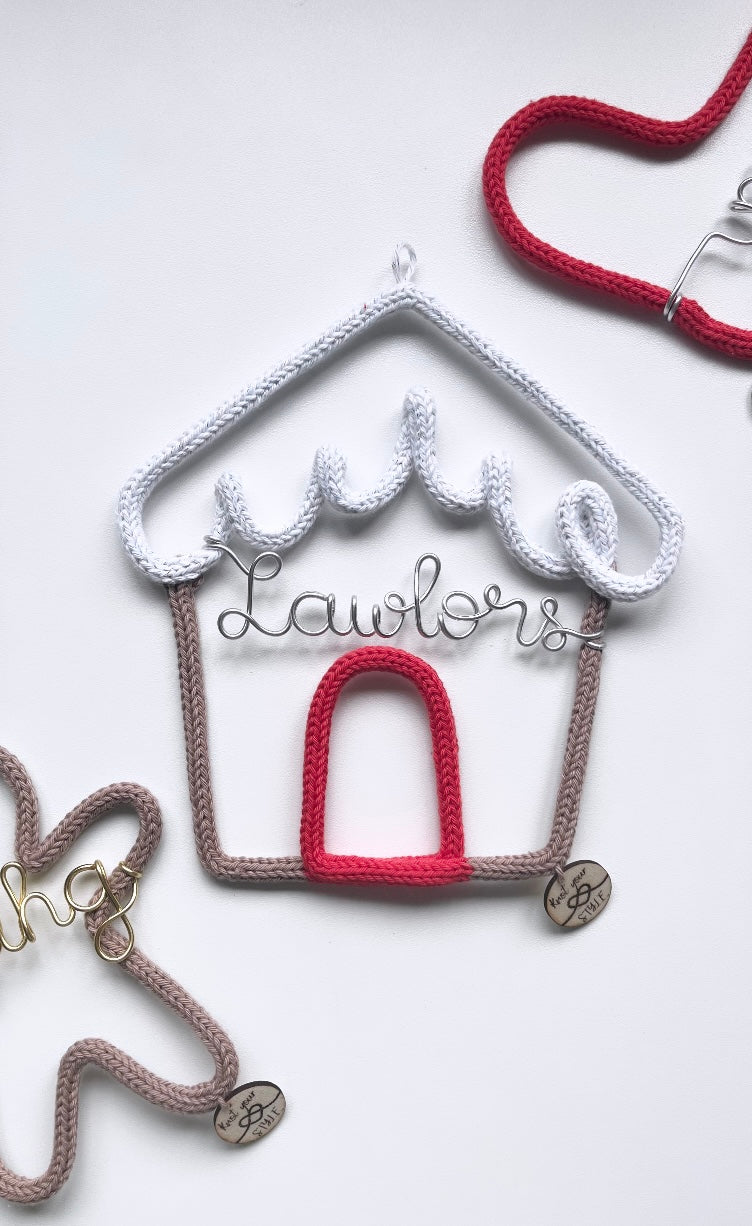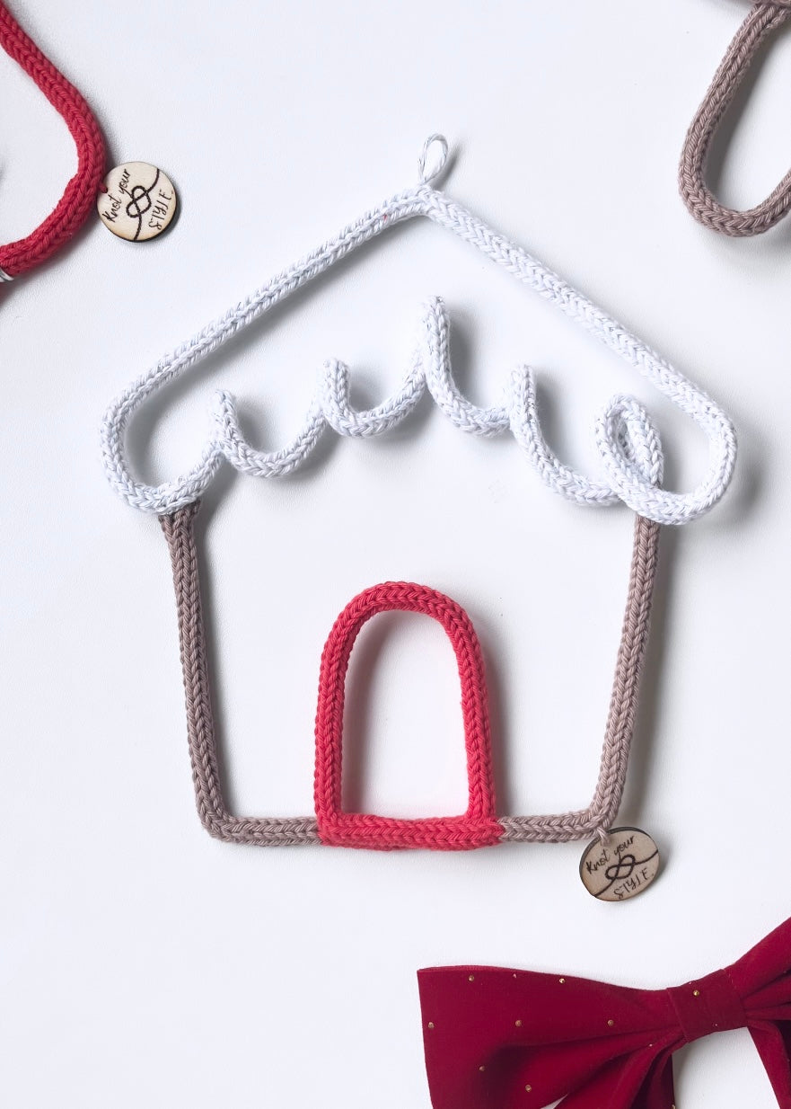 Deck the halls with this festive gingerbread house Christmas decoration! Made from knitted wire, this unique piece is sure to add a charming touch to your holiday decor. Perfect for any home, this delightful decoration will bring joy and warmth to the holiday season.